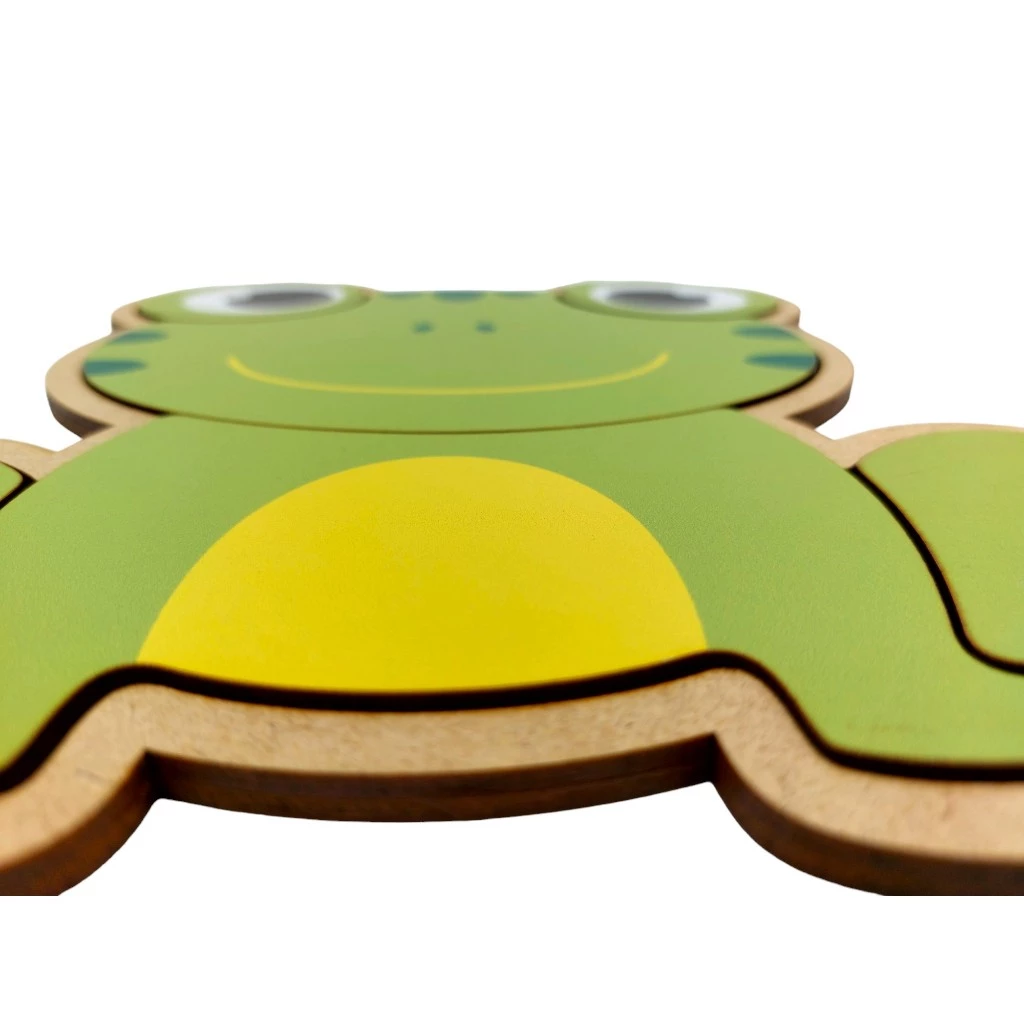 O Brinquedo Pedagógico Educativo Quebra Cabeça Encaixe Sapo MDF é um brinquedo educativo infantil em madeira MDF com design de sapo e peças de encaixe que formam um quebra-cabeça. Desenvolvido para estimular a coordenação motora, raciocínio lógico e percepção visual, ele é ideal para crianças em fase de desenvolvimento, proporcionando aprendizado e diversão de forma lúdica e interativa.